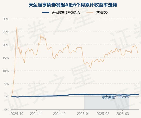 证券之星消息,3月24日,天弘通享债券发起A最新单位净值为1.0033元,累计净值为1.0317元,较前一交易日上涨0.02%。历史数据显示该基金近1个月上涨0.15%,近3个月下跌0.08%,近6个月上涨0.76%,近1年上涨1.84%。该基金近6个月的累计收益率走势如下图: