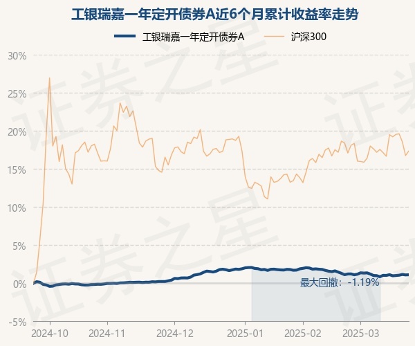 证券之星消息,3月24日,工银瑞嘉一年定开债券A最新单位净值为1.0559元,累计净值为1.0753元,较前一交易日上涨0.02%。历史数据显示该基金近1个月下跌0.01%,近3个月下跌0.65%,近6个月上涨1.11%,近1年上涨3.2%。该基金近6个月的累计收益率走势如下图: