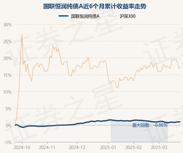证券之星消息,3月24日,国联恒润纯债A最新单位净值为1.0226元,累计净值为1.0696元,较前一交易日上涨0.03%。历史数据显示该基金近1个月上涨1.48%,近3个月下跌0.23%,近6个月上涨1.02%,近1年上涨3.02%。该基金近6个月的累计收益率走势如下图: