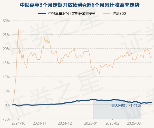 证券之星消息,3月24日,中银嘉享3个月定期开放债券A最新单位净值为1.0247元,累计净值为1.1197元,较前一交易日上涨0.03%。历史数据显示该基金近1个月下跌0.14%,近3个月下跌0.72%,近6个月上涨0.82%,近1年上涨3.21%。该基金近6个月的累计收益率走势如下图: