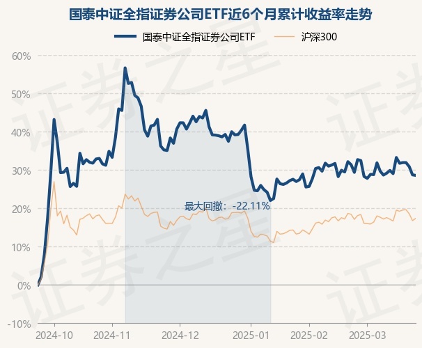 证券之星消息,3月24日,国泰中证全指证券公司ETF最新单位净值为1.1107元,累计净值为1.1107元,较前一交易日下跌0.12%。历史数据显示该基金近1个月下跌2.12%,近3个月下跌8.15%,近6个月上涨28.6%,近1年上涨24.71%。该基金近6个月的累计收益率走势如下图: