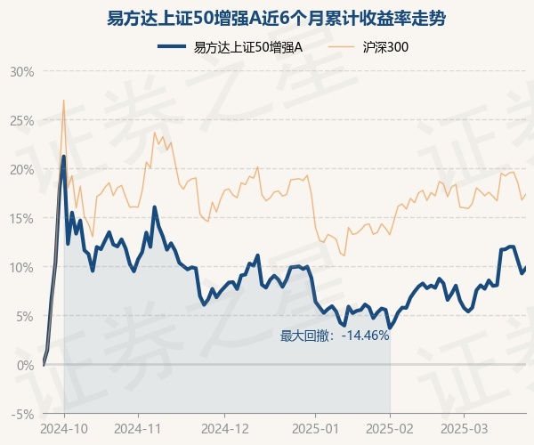 证券之星消息,3月24日,易方达上证50增强A最新单位净值为1.8682元,累计净值为3.8582元,较前一交易日上涨0.51%。历史数据显示该基金近1个月上涨1.44%,近3个月下跌0.05%,近6个月上涨9.83%,近1年上涨5.74%。该基金近6个月的累计收益率走势如下图: