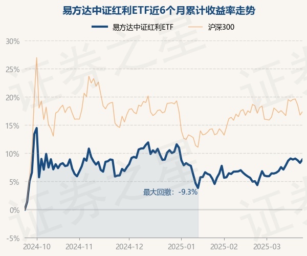 证券之星消息,3月24日,易方达中证红利ETF最新单位净值为1.3524元,累计净值为1.6234元,较前一交易日上涨0.55%。历史数据显示该基金近1个月上涨3.66%,近3个月下跌1.12%,近6个月上涨8.84%,近1年上涨7.51%。该基金近6个月的累计收益率走势如下图:
