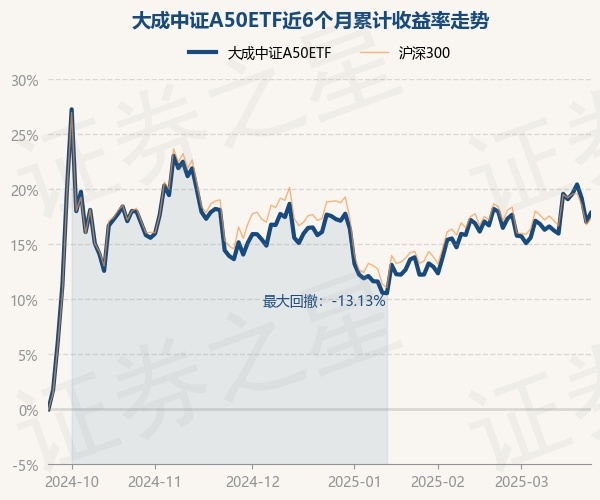证券之星消息,3月24日,大成中证A50ETF最新单位净值为1.1613元,累计净值为1.1613元,较前一交易日上涨0.7%。历史数据显示该基金近1个月下跌0.1%,近3个月上涨0.13%,近6个月上涨17.85%,近1年上涨16.62%。该基金近6个月的累计收益率走势如下图: