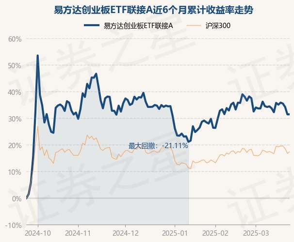 证券之星消息,3月24日,易方达创业板ETF联接A最新单位净值为2.2075元,累计净值为2.2075元,较前一交易日上涨0.01%。历史数据显示该基金近1个月下跌4.79%,近3个月下跌2.59%,近6个月上涨31.47%,近1年上涨15.54%。该基金近6个月的累计收益率走势如下图:
