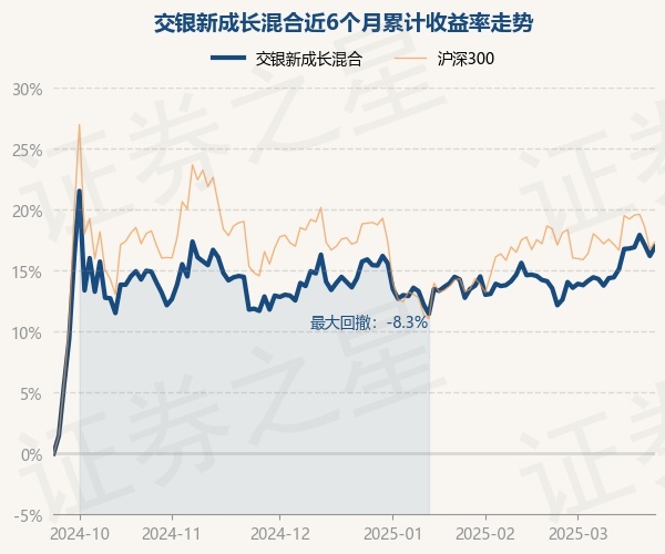 证券之星消息,3月24日,交银新成长混合最新单位净值为3.269元,累计净值为3.669元,较前一交易日上涨0.65%。历史数据显示该基金近1个月上涨2.99%,近3个月上涨1.05%,近6个月上涨16.96%,近1年上涨0.93%。该基金近6个月的累计收益率走势如下图: