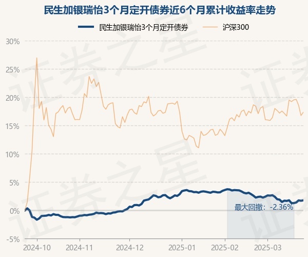证券之星消息,3月24日,民生加银瑞怡3个月定开债券最新单位净值为1.0687元,累计净值为1.0887元,较前一交易日上涨0.07%。历史数据显示该基金近1个月下跌0.47%,近3个月下跌0.56%,近6个月上涨1.77%,近1年上涨6.15%。该基金近6个月的累计收益率走势如下图: