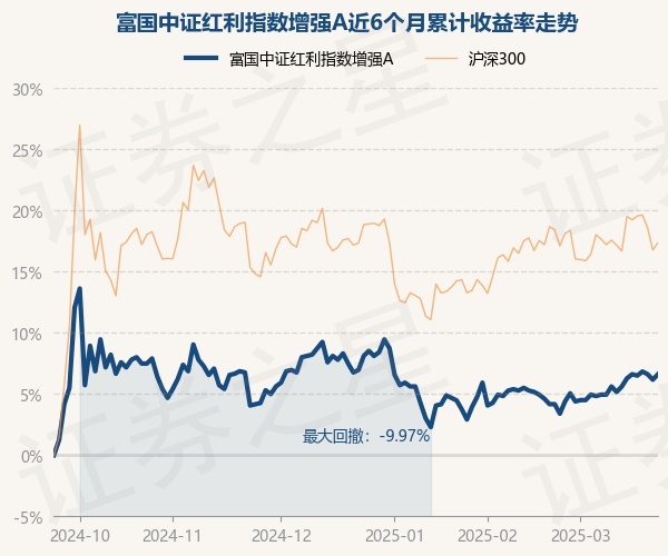 证券之星消息,3月24日,富国中证红利指数增强A最新单位净值为0.959元,累计净值为3.192元,较前一交易日上涨0.42%。历史数据显示该基金近1个月上涨2.35%,近3个月下跌1.4%,近6个月上涨6.6%,近1年上涨3.37%。该基金近6个月的累计收益率走势如下图: