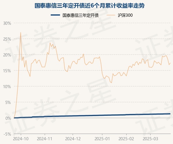 证券之星消息,3月24日,国泰惠信三年定开债最新单位净值为1.0022元,累计净值为1.1441元,较前一交易日上涨0.01%。历史数据显示该基金近1个月上涨0.16%,近3个月上涨0.51%,近6个月上涨1.28%,近1年上涨2.45%。该基金近6个月的累计收益率走势如下图: