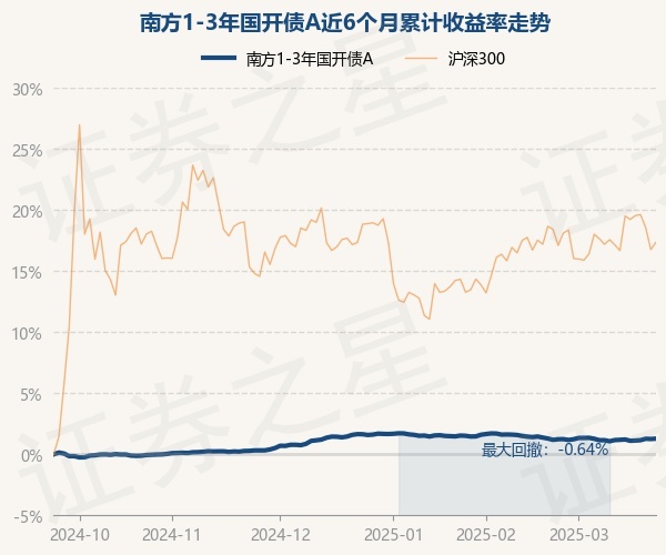 证券之星消息,3月24日,南方1-3年国开债A最新单位净值为1.0427元,累计净值为1.2027元,较前一交易日上涨0.03%。历史数据显示该基金近1个月上涨0.1%,近3个月下跌0.35%,近6个月上涨1.28%,近1年上涨3.25%。该基金近6个月的累计收益率走势如下图: