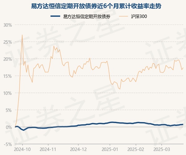 证券之星消息,3月24日,易方达恒信定期开放债券最新单位净值为1.0314元,累计净值为1.2704元,较前一交易日上涨0.04%。历史数据显示该基金近1个月上涨0.13%,近3个月下跌0.28%,近6个月上涨0.71%,近1年上涨2.87%。该基金近6个月的累计收益率走势如下图: