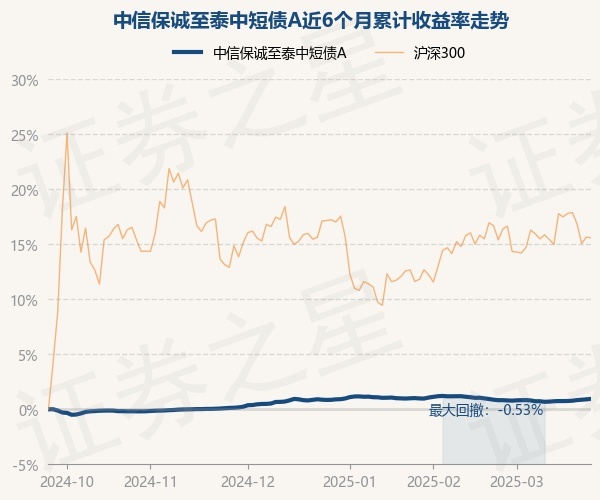 证券之星消息,3月25日,中信保诚至泰中短债A最新单位净值为1.232元,累计净值为1.232元,较前一交易日上涨0.04%。历史数据显示该基金近1个月上涨0.11%,近3个月上涨0.09%,近6个月上涨0.94%,近1年上涨3.38%。该基金近6个月的累计收益率走势如下图: