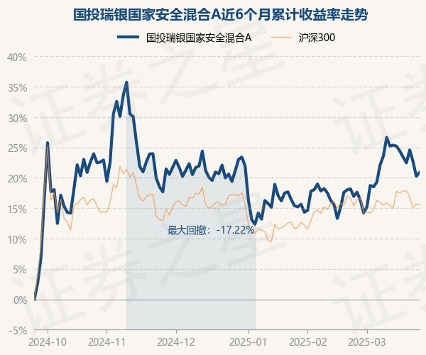 证券之星消息,3月25日,国投瑞银国家安全混合A最新单位净值为1.065元,累计净值为1.224元,较前一交易日上涨0.53%。历史数据显示该基金近1个月上涨3.38%,近3个月上涨1.25%,近6个月上涨20.89%,近1年上涨17.29%。该基金近6个月的累计收益率走势如下图: