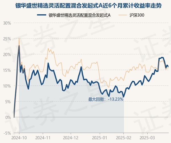 证券之星消息,3月25日,银华盛世精选灵活配置混合发起式A最新单位净值为1.6309元,累计净值为2.117元,较前一交易日下跌0.39%。历史数据显示该基金近1个月上涨5.27%,近3个月上涨4.75%,近6个月上涨16.04%,近1年上涨2.8%。该基金近6个月的累计收益率走势如下图: