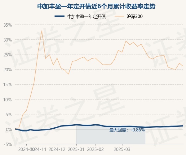证券之星消息,3月25日,中加丰盈一年定开债最新单位净值为1.13元,累计净值为1.3298元,较前一交易日上涨0.06%。历史数据显示该基金近1个月上涨0.2%,近3个月下跌0.04%,近6个月上涨1.02%,近1年上涨2.76%。该基金近6个月的累计收益率走势如下图: