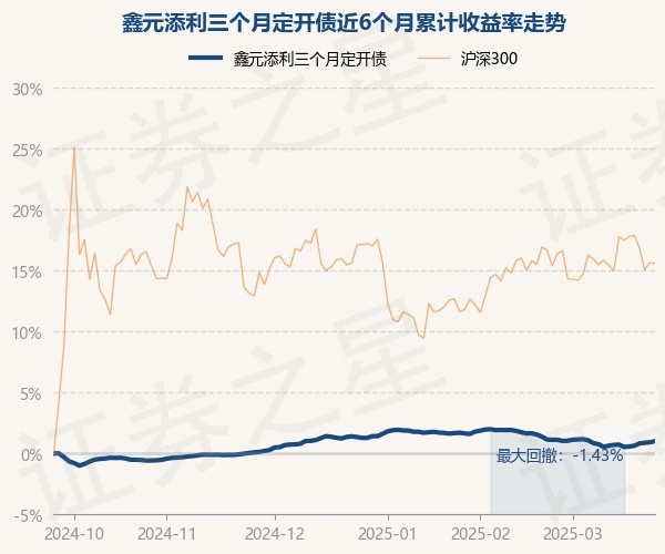 证券之星消息,3月25日,鑫元添利三个月定开债最新单位净值为1.0261元,累计净值为1.2301元,较前一交易日上涨0.1%。历史数据显示该基金近1个月下跌0.11%,近3个月下跌0.26%,近6个月上涨1.01%,近1年上涨5.88%。该基金近6个月的累计收益率走势如下图: