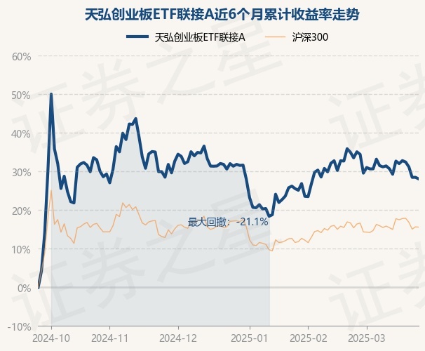 证券之星消息,3月25日,天弘创业板ETF联接A最新单位净值为0.8775元,累计净值为0.8775元,较前一交易日下跌0.32%。历史数据显示该基金近1个月下跌4.08%,近3个月下跌2.5%,近6个月上涨28.08%,近1年上涨16.49%。该基金近6个月的累计收益率走势如下图: