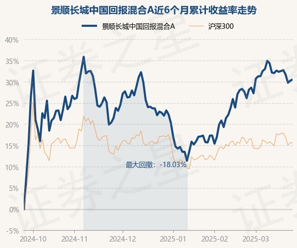 证券之星消息,3月25日,景顺长城中国回报混合A最新单位净值为1.364元,累计净值为1.801元,较前一交易日上涨0.22%。历史数据显示该基金近1个月上涨3.49%,近3个月上涨6.4%,近6个月上涨30.53%,近1年上涨16.78%。该基金近6个月的累计收益率走势如下图: