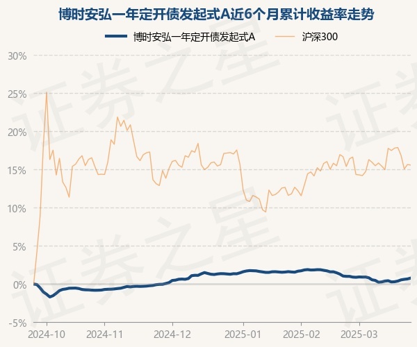证券之星消息,3月25日,博时安弘一年定开债发起式A最新单位净值为1.1614元,累计净值为1.321元,较前一交易日上涨0.11%。历史数据显示该基金近1个月下跌0.22%,近3个月下跌0.53%,近6个月上涨0.78%,近1年上涨2.82%。该基金近6个月的累计收益率走势如下图: