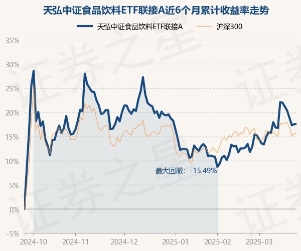 证券之星消息,3月25日,天弘中证食品饮料ETF联接A最新单位净值为2.2574元,累计净值为2.3355元,较前一交易日上涨0.01%。历史数据显示该基金近1个月上涨5.17%,近3个月下跌1.64%,近6个月上涨17.56%,近1年下跌3.29%。该基金近6个月的累计收益率走势如下图: