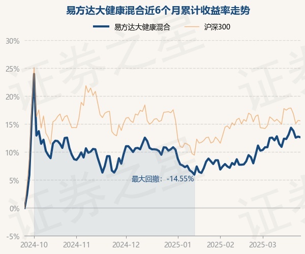 证券之星消息,3月25日,易方达大健康混合最新单位净值为1.836元,累计净值为1.836元,较前一交易日下跌0.11%。历史数据显示该基金近1个月上涨4.32%,近3个月上涨1.66%,近6个月上涨12.64%,近1年上涨1.27%。该基金近6个月的累计收益率走势如下图: