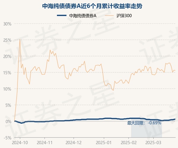 证券之星消息,3月25日,中海纯债债券A最新单位净值为1.151元,累计净值为1.378元,较前一交易日上涨0.09%。历史数据显示该基金近1个月上涨0.09%,近3个月上涨0.0%,近6个月上涨0.61%,近1年上涨2.87%。该基金近6个月的累计收益率走势如下图: