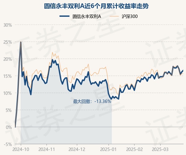 证券之星消息,3月25日,圆信永丰双利A最新单位净值为0.8254元,累计净值为2.6014元,较前一交易日上涨0.38%。历史数据显示该基金近1个月上涨2.17%,近3个月上涨3.34%,近6个月上涨16.55%,近1年上涨9.25%。该基金近6个月的累计收益率走势如下图: