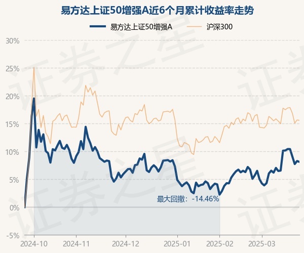 证券之星消息,3月25日,易方达上证50增强A最新单位净值为1.8654元,累计净值为3.8554元,较前一交易日下跌0.15%。历史数据显示该基金近1个月上涨2.9%,近3个月下跌0.25%,近6个月上涨8.13%,近1年上涨5.37%。该基金近6个月的累计收益率走势如下图: