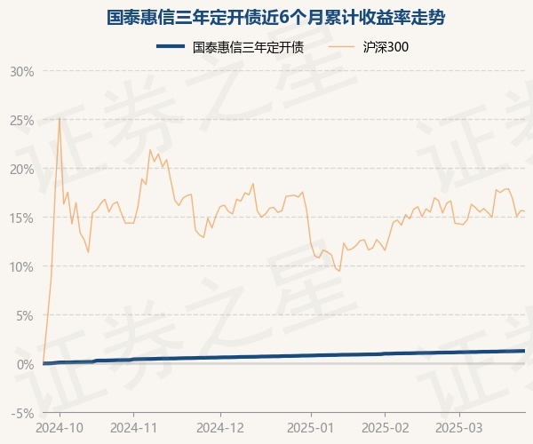 证券之星消息,3月25日,国泰惠信三年定开债最新单位净值为1.0023元,累计净值为1.1442元,较前一交易日上涨0.01%。历史数据显示该基金近1个月上涨0.17%,近3个月上涨0.52%,近6个月上涨1.28%,近1年上涨2.44%。该基金近6个月的累计收益率走势如下图: