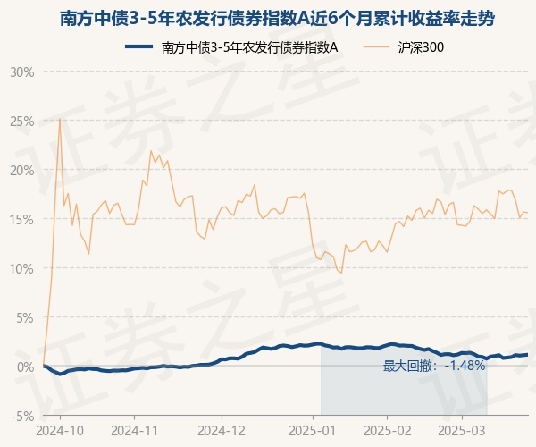 证券之星消息,3月25日,南方中债3-5年农发行债券指数A最新单位净值为1.1023元,累计净值为1.2553元,较前一交易日上涨0.05%。历史数据显示该基金近1个月下跌0.05%,近3个月下跌0.76%,近6个月上涨1.14%,近1年上涨4.56%。该基金近6个月的累计收益率走势如下图: