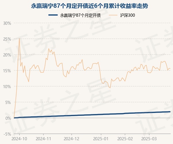 证券之星消息,3月25日,永赢瑞宁87个月定开债最新单位净值为1.0943元,累计净值为1.1863元,较前一交易日上涨0.01%。历史数据显示该基金近1个月上涨0.3%,近3个月上涨0.92%,近6个月上涨1.94%,近1年上涨3.95%。该基金近6个月的累计收益率走势如下图: