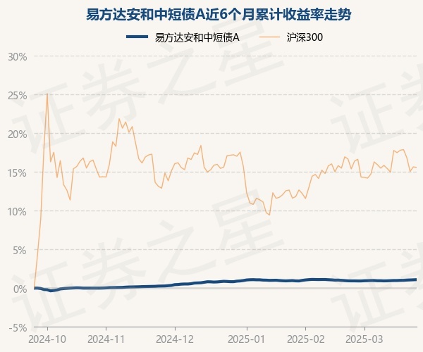 证券之星消息,3月25日,易方达安和中短债A最新单位净值为1.0694元,累计净值为1.1294元,较前一交易日上涨0.02%。历史数据显示该基金近1个月上涨0.16%,近3个月上涨0.26%,近6个月上涨1.1%,近1年上涨2.43%。该基金近6个月的累计收益率走势如下图: