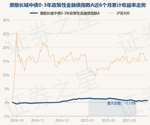 证券之星消息,3月25日,景顺长城中债0-3年政策性金融债指数A最新单位净值为1.043元,累计净值为1.0624元,较前一交易日上涨0.04%。历史数据显示该基金近1个月下跌0.02%,近3个月下跌0.54%,近6个月上涨0.71%,近1年上涨3.37%。该基金近6个月的累计收益率走势如下图: