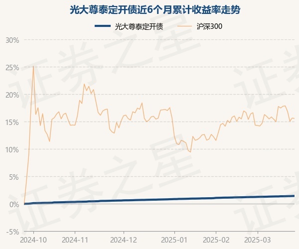 证券之星消息,3月25日,光大尊泰定开债最新单位净值为1.0332元,累计净值为1.1516元,较前一交易日上涨0.01%。历史数据显示该基金近1个月上涨0.2%,近3个月上涨0.63%,近6个月上涨1.44%,近1年上涨2.91%。该基金近6个月的累计收益率走势如下图: