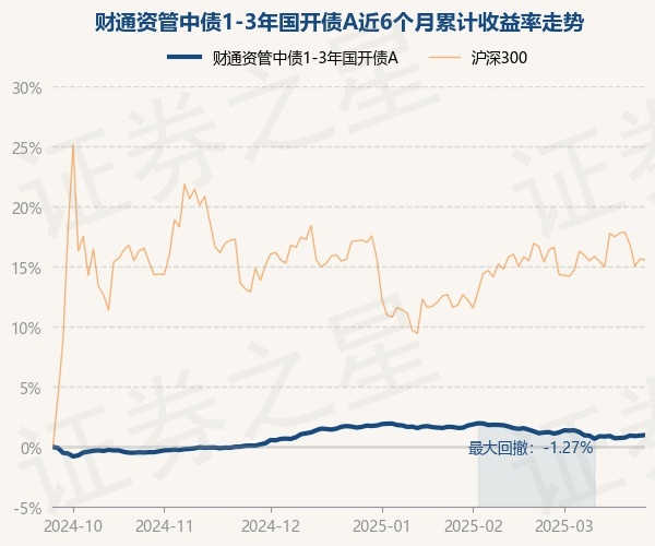证券之星消息,3月25日,财通资管中债1-3年国开债A最新单位净值为1.0128元,累计净值为1.1108元,较前一交易日上涨0.04%。历史数据显示该基金近1个月下跌0.22%,近3个月下跌0.61%,近6个月上涨0.98%,近1年上涨3.34%。该基金近6个月的累计收益率走势如下图: