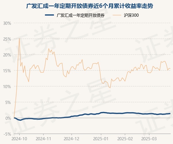 证券之星消息,3月25日,广发汇成一年定期开放债券最新单位净值为1.0107元,累计净值为1.1447元,较前一交易日上涨0.05%。历史数据显示该基金近1个月上涨0.15%,近3个月上涨0.23%,近6个月上涨1.37%,近1年上涨3.83%。该基金近6个月的累计收益率走势如下图: