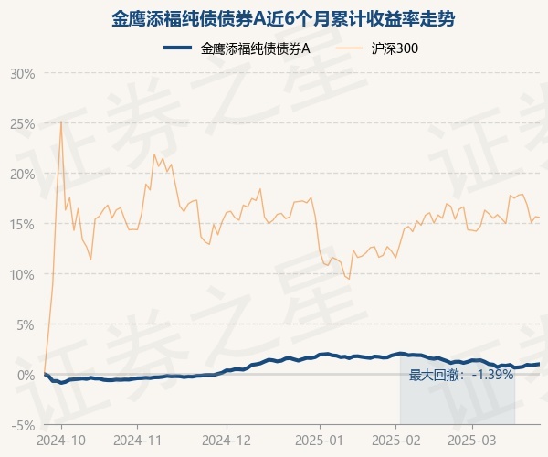 证券之星消息,3月25日,金鹰添福纯债债券A最新单位净值为1.0085元,累计净值为1.0593元,较前一交易日上涨0.05%。历史数据显示该基金近1个月下跌0.23%,近3个月下跌0.35%,近6个月上涨0.99%,近1年上涨3.67%。该基金近6个月的累计收益率走势如下图:
