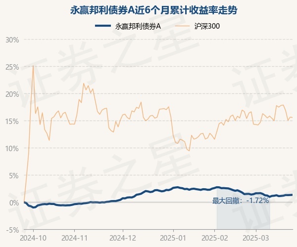证券之星消息,3月25日,永赢邦利债券A最新单位净值为1.1119元,累计净值为1.1969元,较前一交易日上涨0.03%。历史数据显示该基金近1个月下跌0.17%,近3个月下跌0.63%,近6个月上涨1.35%,近1年上涨4.55%。该基金近6个月的累计收益率走势如下图: