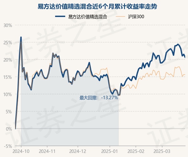 证券之星消息,3月25日,易方达价值精选混合最新单位净值为1.1178元,累计净值为3.8928元,较前一交易日下跌0.72%。历史数据显示该基金近1个月上涨0.4%,近3个月上涨5.13%,近6个月上涨20.66%,近1年上涨4.16%。该基金近6个月的累计收益率走势如下图: