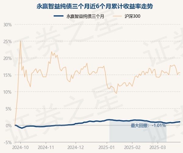 证券之星消息,3月25日,永赢智益纯债三个月最新单位净值为1.1404元,累计净值为1.2163元,较前一交易日上涨0.05%。历史数据显示该基金近1个月上涨0.1%,近3个月下跌0.09%,近6个月上涨1.04%,近1年上涨3.48%。该基金近6个月的累计收益率走势如下图: