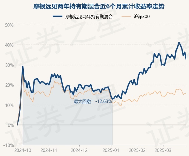 证券之星消息,3月25日,摩根远见两年持有期混合最新单位净值为0.8187元,累计净值为0.8187元,较前一交易日下跌2.55%。历史数据显示该基金近1个月下跌0.61%,近3个月上涨13.08%,近6个月上涨32.82%,近1年上涨24.03%。该基金近6个月的累计收益率走势如下图: