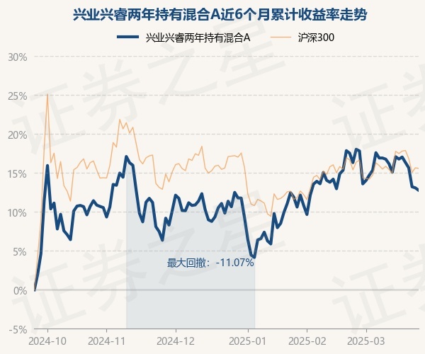 证券之星消息,3月25日,兴业兴睿两年持有混合A最新单位净值为0.8145元,累计净值为0.8145元,较前一交易日下跌0.27%。历史数据显示该基金近1个月下跌3.05%,近3个月上涨1.91%,近6个月上涨12.78%,近1年上涨9.31%。该基金近6个月的累计收益率走势如下图: