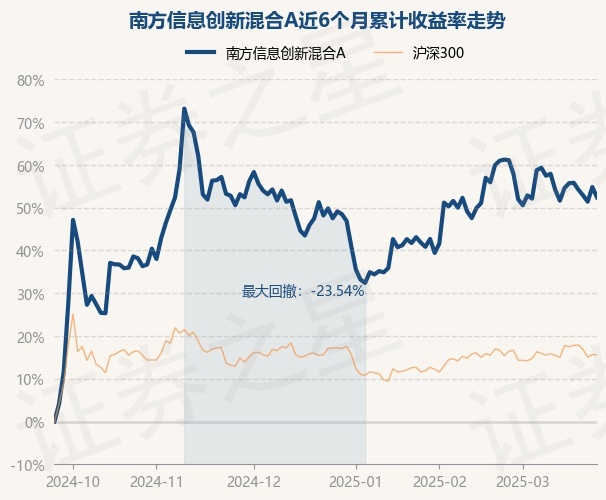 证券之星消息,3月25日,南方信息创新混合A最新单位净值为1.8307元,累计净值为1.8307元,较前一交易日下跌1.55%。历史数据显示该基金近1个月下跌5.47%,近3个月上涨3.32%,近6个月上涨52.41%,近1年上涨25.24%。该基金近6个月的累计收益率走势如下图: