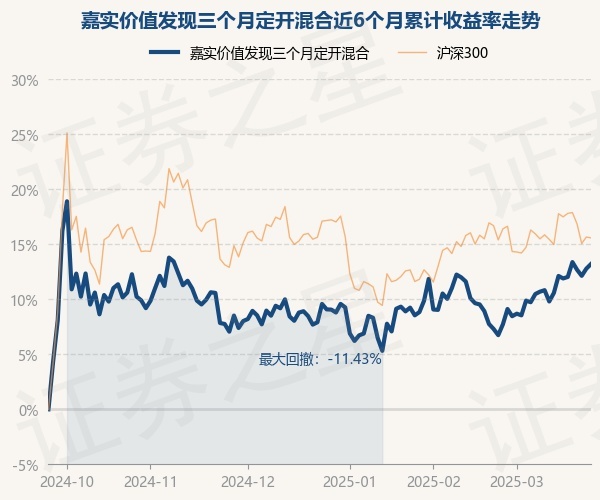 证券之星消息,3月25日,嘉实价值发现三个月定开混合最新单位净值为1.0059元,累计净值为1.1038元,较前一交易日上涨0.37%。历史数据显示该基金近1个月上涨6.05%,近3个月上涨3.78%,近6个月上涨13.2%,近1年上涨15.97%。该基金近6个月的累计收益率走势如下图: