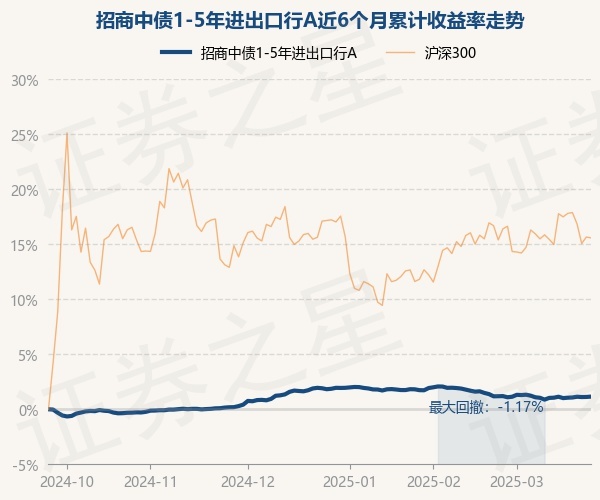 证券之星消息,3月25日,招商中债1-5年进出口行A最新单位净值为1.0131元,累计净值为1.1731元,较前一交易日上涨0.03%。历史数据显示该基金近1个月下跌0.04%,近3个月下跌0.66%,近6个月上涨1.15%,近1年上涨3.79%。该基金近6个月的累计收益率走势如下图: