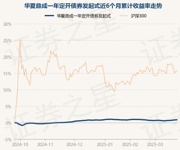 证券之星消息,3月25日,华夏鼎成一年定开债券发起式最新单位净值为1.1355元,累计净值为1.1355元,较前一交易日上涨0.04%。历史数据显示该基金近1个月上涨0.21%,近3个月上涨0.11%,近6个月上涨0.94%,近1年上涨3.61%。该基金近6个月的累计收益率走势如下图:
