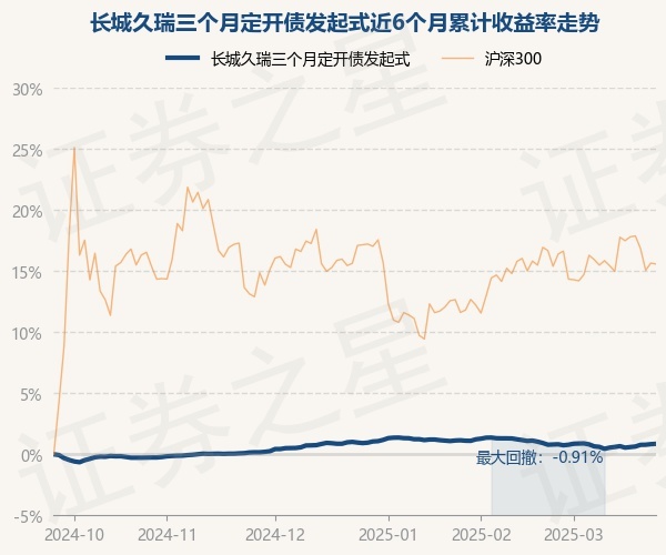 长城久瑞三个月定开债发起式为债券型-长债基金,根据最新一期基金季报显示,该基金资产配置:无股票类资产,债券占净值比108.24%,现金占净值比0.02%。