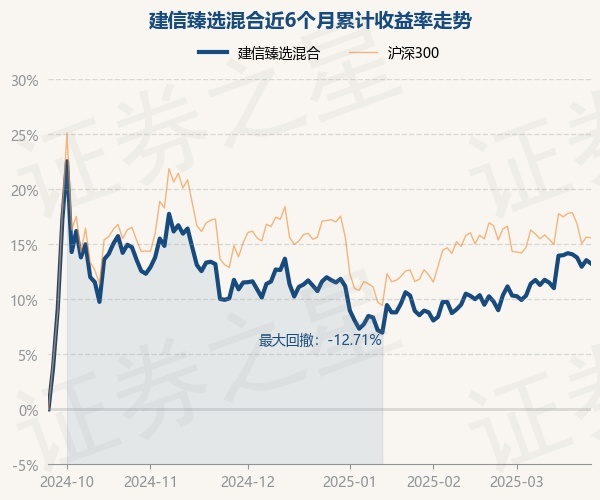 证券之星消息,3月25日,建信臻选混合最新单位净值为0.8547元,累计净值为0.8547元,较前一交易日下跌0.27%。历史数据显示该基金近1个月上涨3.89%,近3个月上涨1.11%,近6个月上涨13.25%,近1年上涨12.95%。该基金近6个月的累计收益率走势如下图: