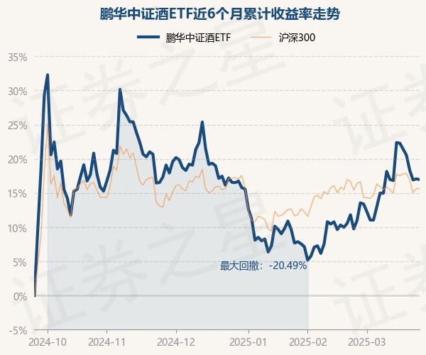 证券之星消息,3月25日,鹏华中证酒ETF最新单位净值为0.6232元,累计净值为1.9464元,较前一交易日下跌0.08%。历史数据显示该基金近1个月上涨6.58%,近3个月上涨0.35%,近6个月上涨16.97%,近1年下跌9.56%。该基金近6个月的累计收益率走势如下图:
