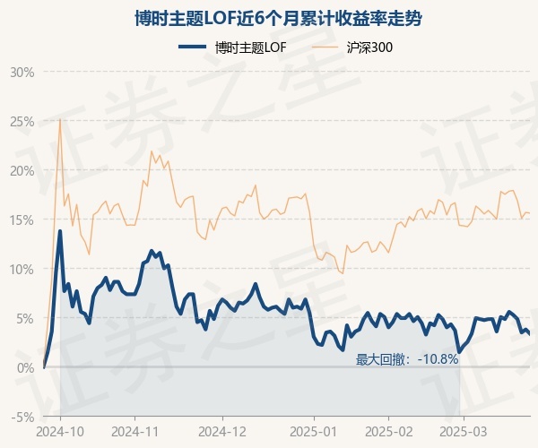 证券之星消息,3月25日,博时主题LOF最新单位净值为0.984元,累计净值为5.679元,较前一交易日下跌0.4%。历史数据显示该基金近1个月下跌0.61%,近3个月下跌2.48%,近6个月上涨3.36%,近1年下跌0.91%。该基金近6个月的累计收益率走势如下图:
